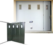 La porte de garage coulissante, PVC ou BOIS, constitue une solution économique et peu encombrante. Elle est composée de plusieurs panneaux assemblés les uns aux autres par des paumelles permettant d’articuler l’ensemble.